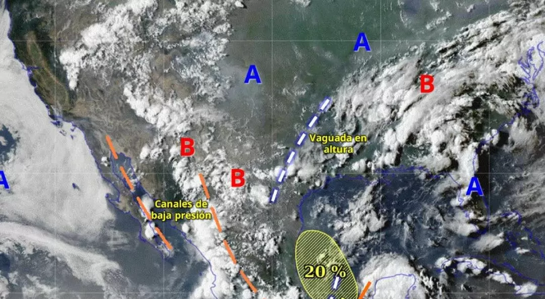 Además, la onda tropical número 22 se desplazará sobre el sureste y oriente de la República Mexicana, continuando asociada a una zona de baja presión con probabilidad de desarrollo ciclónico en la Sonda de Campeche. También se espera un canal de baja presión sobre la península de Yucatán, lo que provocará lluvias fuertes a muy fuertes en estas regiones.