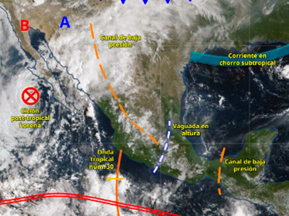 El Servicio Meteorológico Nacional (SMN) pronostica un sábado marcado por condiciones climáticas contrastantes en gran parte del país. Mientras una intensa ola de calor se mantiene en el norte, con temperaturas superiores a los 45 °C, se esperan lluvias fuertes remanentes del ciclón tropical Lorena, descargas eléctricas y caída de granizo en múltiples estados.